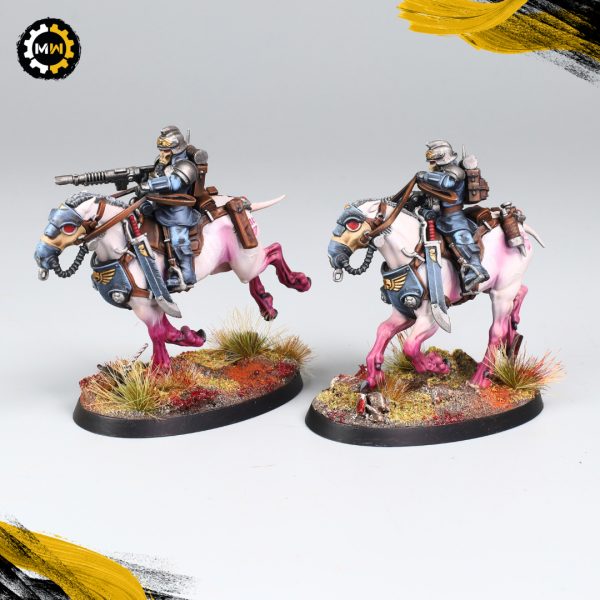Aquí tenemos un pequeño contingente del Astra Militarum con una unidad de Caballería de Krieg con una formula para los caballos bastante original….