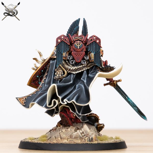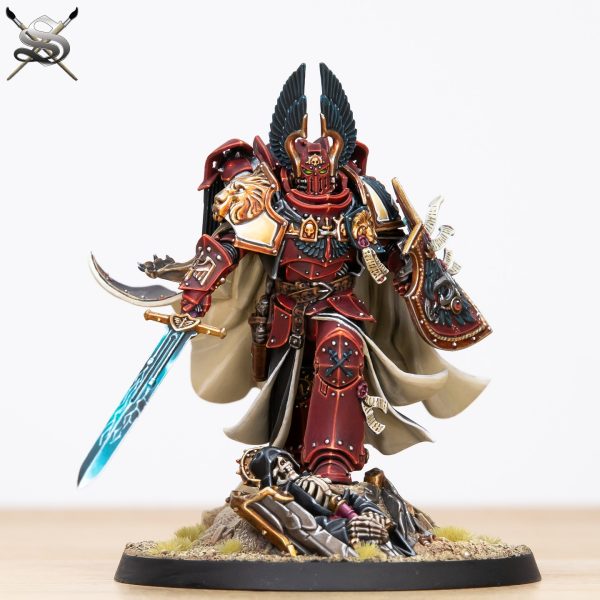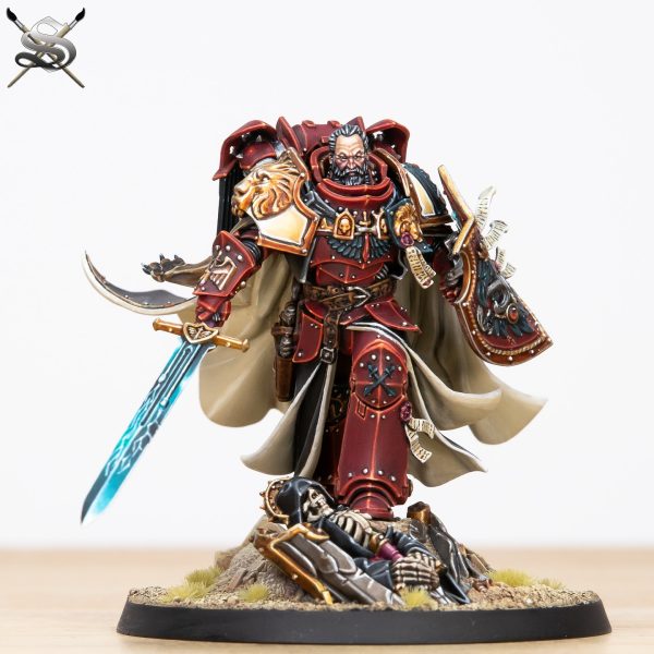Empecemos con el gran primarca Lion El´Jonson que es ya de por si una maravillosa miniatura y de las mejores sin duda en Warhammer 40000. Hoy se sale del clásico pintado verde oscuro o blancos o negros para irse a tonalidades y colores rojos. Igualmente preciosa.
