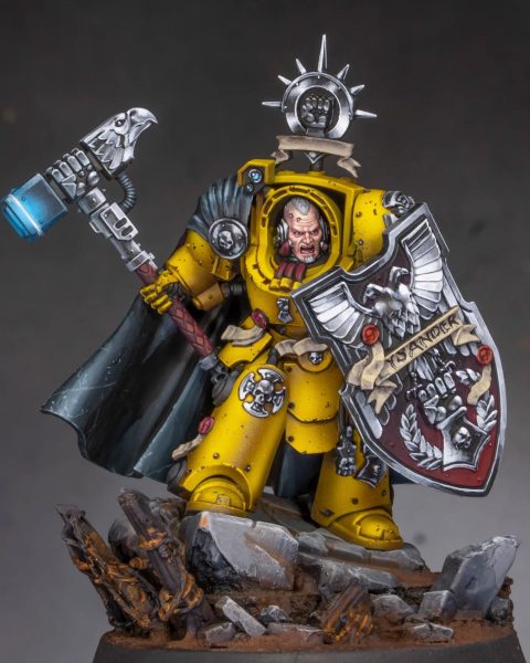 Ahora tenemos otra miniaturón como es Lysander de los Puños Imperiales pero en esta ocasión no con un amarillo chillon muy habitual en este capítulo. Esta vez tenemos a un guerrero que esta lleno de detalles de desgaste en su aemadura y un amarillo desgastado de tanto combatir. Y por supuesto escudo y arma dando luminosidad y detalles al conjunto con un gran pintado.