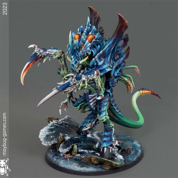 Y terminamos con muchas afiladas garras con este Tiranido lleno de color. Mucho trabajo en él por lo que es algo para buenos pintores porque esas combinaciones de azules y blancos y esos degradados es solo para pinceles expertos. Bravo por este gran miniatura.