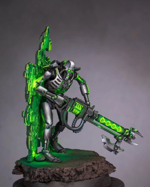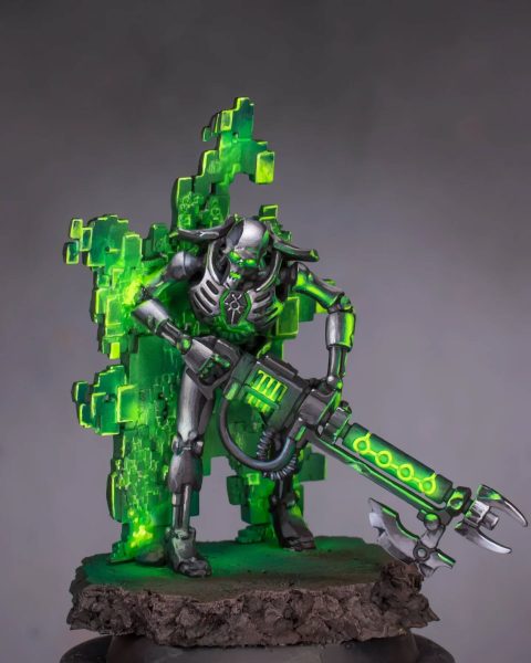 Primero tenemos este necrón con un toque original y muy bien trabajado de salir de un portal clásico de los que utiliza esta raza en el juego.