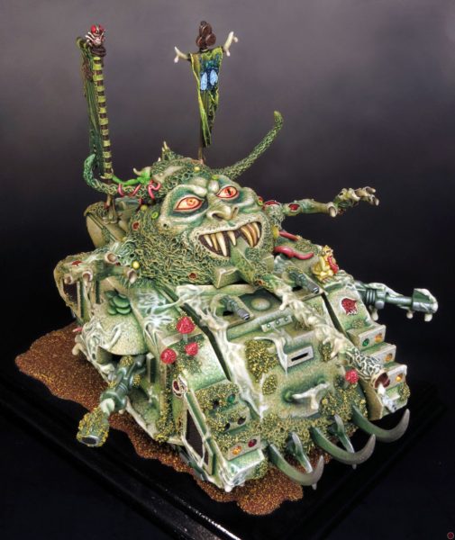 Si eres un ser creativo sin duda trabajar en unión con Nurgle es una gran posibilidad de dejar libre tu imaginación y demostrar tus técnicas de trabajo como en este tanque totalmente personalizado. Nurgle ama estos extras y esta manera de transformar sus tropas y vehículos.