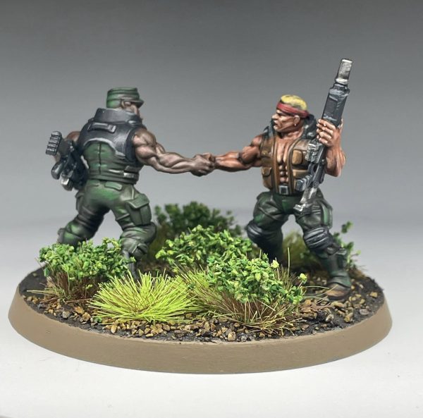 Un diorama mucho más simple pero que me ha gustado por su originalidad. Choque de manos para quizás desearse suerte en un inminente combate en las junglas de Catachan.