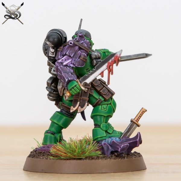 Y aquí un especialista cazador de Tiranidos super bien personalizado con toques en la armadura y peana que os puede dar una idea de crear una unidad o incluso un ejército de Marines Espaciales especialistas en cazar y matar Tiranidos. Bravo por la idea.