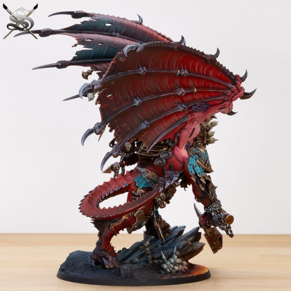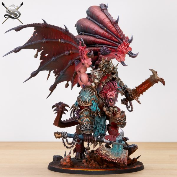 Como siempre digo, con un miniaturón es mucho más fácil dejarte con la boca abierta…. y es que esta miniatura de por si es impresionante y enorme pero luego gale un pintado lleno de buen trabajo de esquema de color, luces y sombras y efecto sangre por ejemplo en la hacha y hay que aplaudor.