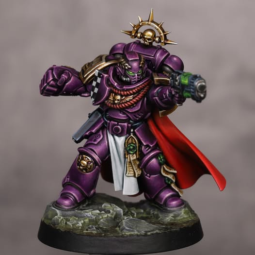 Y siguiendo con la idea originalidad, pues este esquema de color para una capítulo de Marines Espaciales propio, un granate purpura, cierra los ojos e imagina una fuerza de combate así pintada. No debe quedar nada mal…