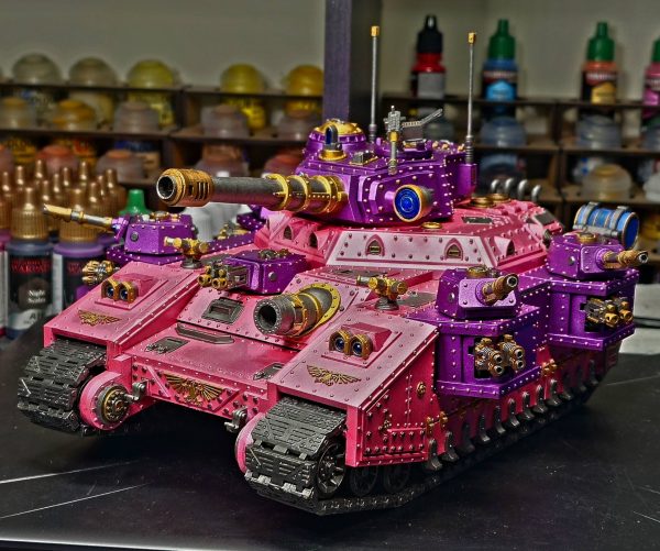 Esto ya es una apuesta arriesgada. Guardia Imperial con estos colores en sus tanques…. ¿Qué piensas tu? No soy muy fan personalmente pero realmente este tanque llamará la atención en mesa.