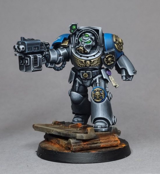 Color menos útilizado al menos en marines leales al Emperador, el violeta es un color resulton como en esta miniatura y un fondo negro fácil de dar. Esta miniatura es realmente fácil de pintar y conseguir buenas minis sin mucho esfuerzo.