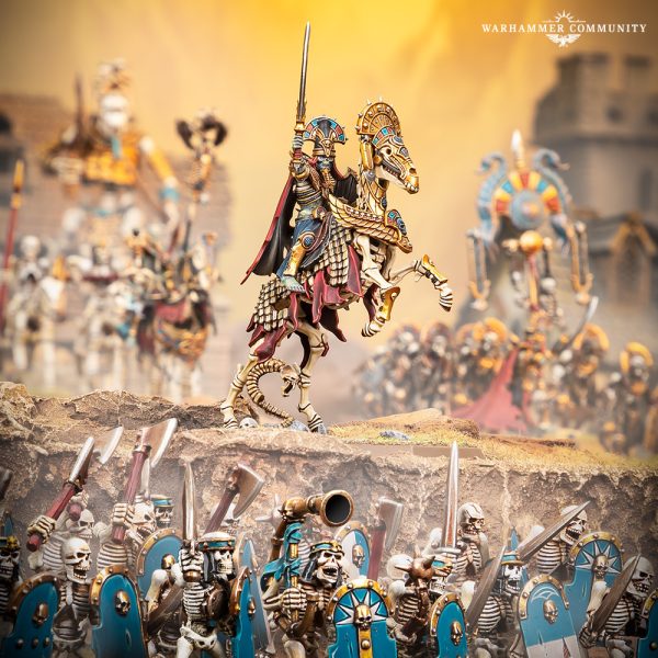 Los jugadores de Reyes Funerarios de Khemri encontrarán una gran cantidad de contenido nuevo, incluyendo reglas para una nueva montura: el corcel esquelético con barda. Estas reglas permiten montar a Reyes Funerarios, Sacerdotes Funerarios y Heraldos Reales sobre monturas con barda.