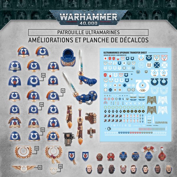También recibirás una hoja de calcomanías con 255 calcomanías individuales, repleta de insignias de campaña, marcas de veteranía, escrituras y un montón de variantes del icono del Capítulo de los Ultramarines para que puedas indicar todo tipo de rangos y misiones especiales