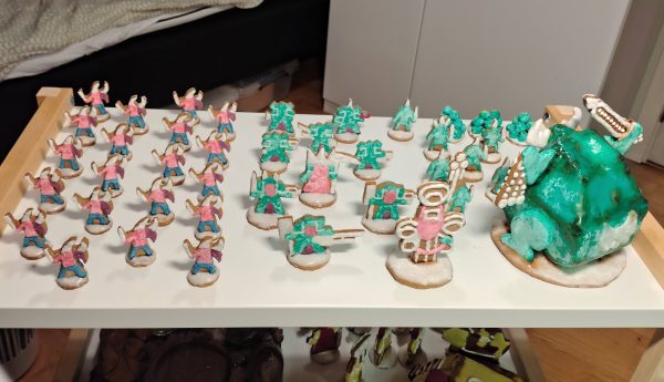 Como veis y saboreáis tenemos unas galletas de Nurgle y Slaanesh listas para la batalla. Podría ser por ejemplo un juego divertido y goloso comerse cada muerto entre los jugadores y los espectadores.