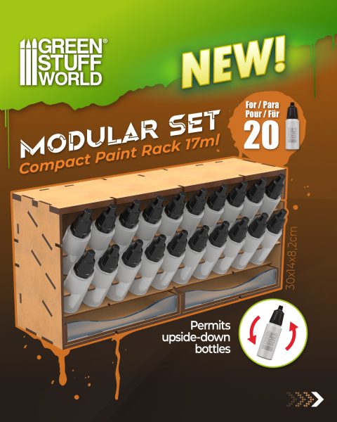 También hay estos pequeños estantes modulares para cada uno de estos tipos de pintura para organizaros mejor a la hora de pintar y no tener los botes mezclados y perdidos. Una mesa ordenada ayuda sin duda vuestra experiencia modelista.