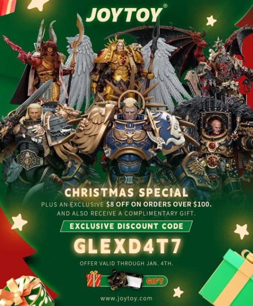 Y si eres fan de las figuras de Joytoy ambientadas en Warhamemr 40000 pues teneís un pequeño descuento usando ese código de la imagen por 100$ de compra.