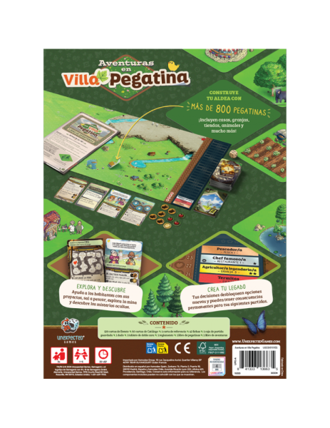 En Aventuras en Villa Pegatina, tus amigos y tú crearéis una aldea entre todos. Aunque es imposible perder la partida, vuestras decisiones provocarán cambios permanentes que tendrán efectos tanto positivos como negativos en la aldea. ¡Intentad obtener logros y felicidad mientras construís la aldea de vuestros sueños!