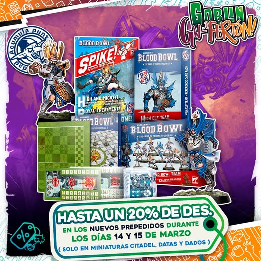 Si eres fan de Blood Bowl y quieres alguna de las novedades de Games Workshop que han comenzado en prepedido hoy pues como siempre en Goblintrader tienen sus buenos e importantes descuentos de fin de semana.