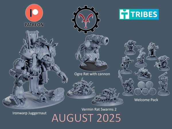 Desde la marca española Vinci Miniatures tienen un PATREON que vemos de vez en cuando por FanHammer y aun en lo que queda de día y de agosto podéis conseguir estas interesantes miniaturas de Skavens y Ratas del Espacia para vuestras Impresoras 3D