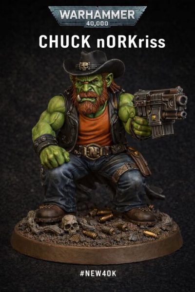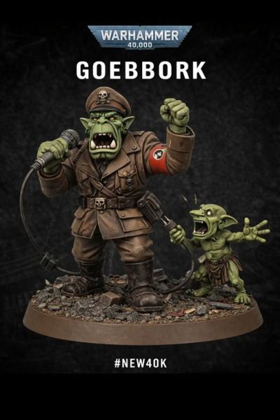 Se trata o de personajes celebres de Warhammer 40000 de orkos o de famosos del cine o de la historia humana que han sido «orkizados» o como se diga por la Inteligencia Artificial.