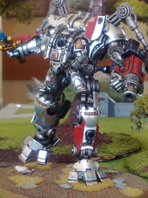Y ya me queda el A Pesado. He querido meter un pequeñin de esos nuevos un dreadknight (o servoterror en español pero me niego a llamarlo asi). Es algo nuevo en el juego auque viejo en el transfondo. Mas que nada lo meto por probarlo y porque la miniatura no esta mal del todo, no pega mucho con los marines pero bueno.
