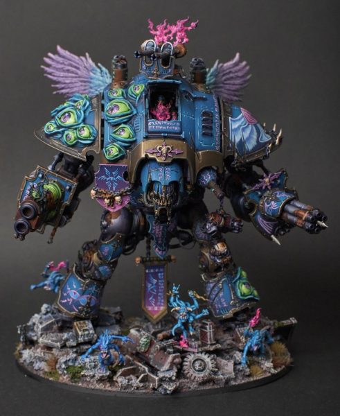 Este otro modelo tiene en cambio mucho más trabajo y es en si un enorme diorama lleno de vida añadiendo pequeños demonios de Tzeentch. Me parece una genail idea para personalizar caballeros de este Dios o por ejemplo de Nurgle.